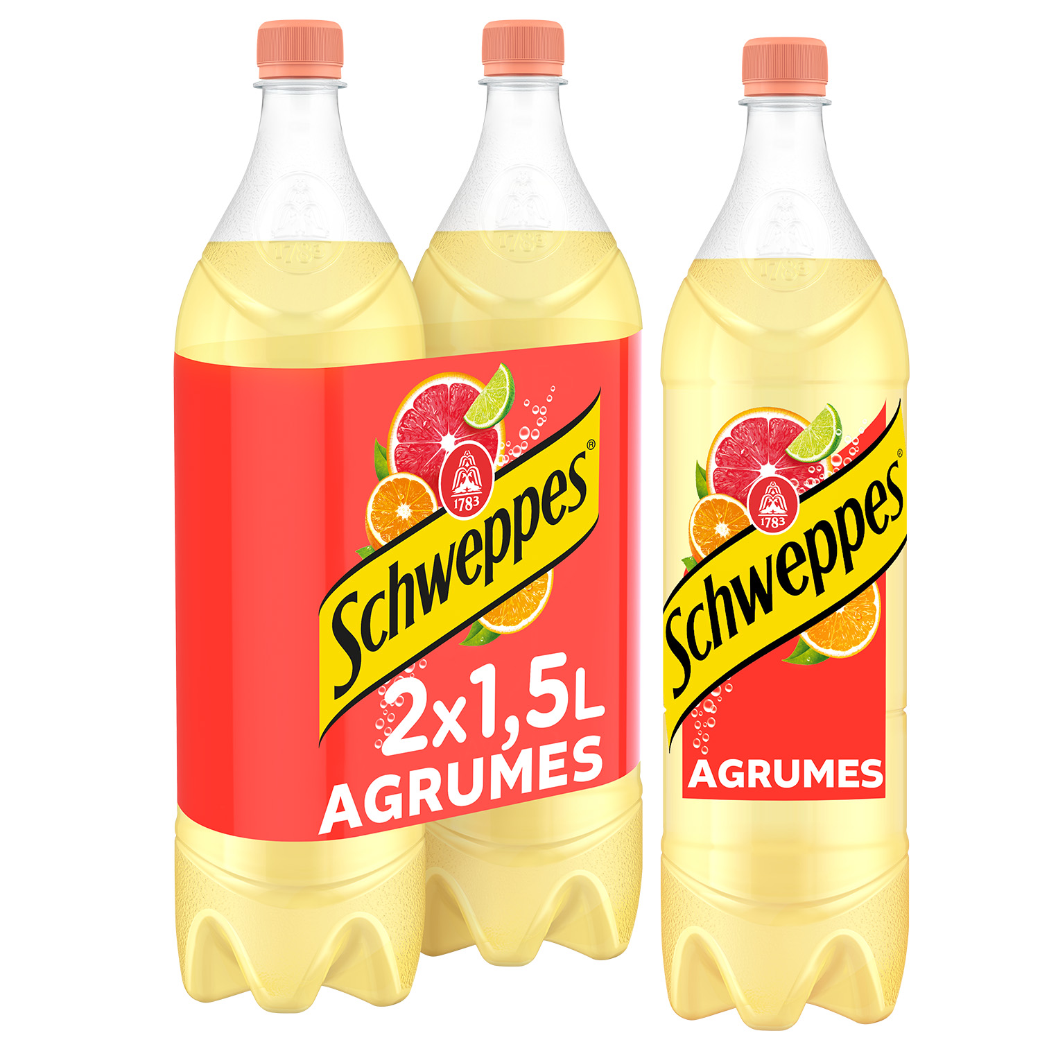 Redécouvrez votre Schweppes Agrumes aux saveurs irrésistibles d'orange, de pamplemousse, de citron vert & de mandarine, et maintenant faible en calories. Une nouvelle recette toujours aussi délicieuse et rafraîchissante, sans colorant et sans arôme artificiel*. * avec arômes naturels