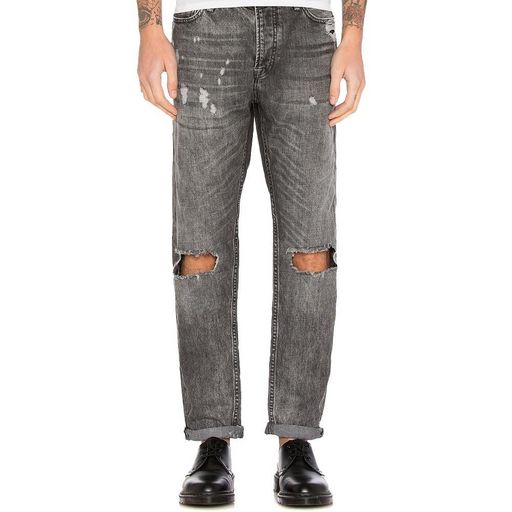 N'attendez plus pour commander ce jean homme de la marque Scotch and Soda ! Couleur : Gris Coupe loose Jeans déchiré sur les genoux 5 poches Passants pour ceinture Braguette boutonnée Composition : 100% coton Attention, les tailles indiquées correspondent aux tailles US !