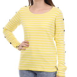 T-shirt femme de la marque Scotch and Soda ! Manches longues Col rond Détails boutons sur les manches Rayures Coloris : jaune / Crème Composition : 100% coton