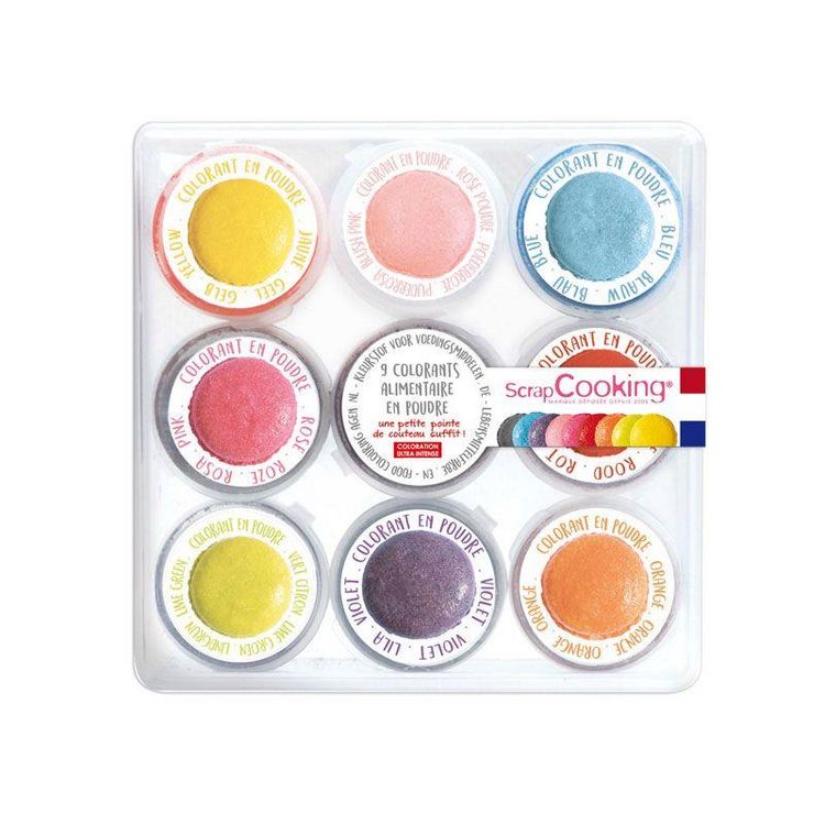 Découvrez notre large palette de colorants alimentaire artificiels en format mini ! 9 colorants en poudre dans une jolie petite boite, pour l'utiliser dans vos gâteaux et autres pâtisserie ou pour offrir en cadeau aux futurs pâtissiers en chef !