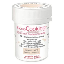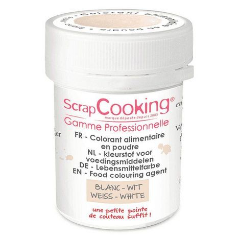 Colorant alimentaire en poudre blanc. Colorant à doser selon le résultat souhaité. Ingrédients : colorant : E170. Peut contenir des traces de fruits à coque, arachides, gluten, œufs, lait, graines de sésame, céleri, moutarde. Poids net : 5 g. Fabriqué en France.