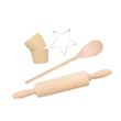 Créez vos propres pâtisseries ! Tout le matériel pour confectionner de magnifiques gâteaux, biscuits, cookies, sablés maison, etc... Indispensable pour les petits chefs en herbe qui veulent pâtisser comme des grands ! Une activité ludique, facile et gourmande que les enfants vont adorer . Idéal pour les premiers pas de vos enfants. Cette mallette contient des ustensiles adaptés aux petites mains de vos enfants : 1 rouleau en bois, 1 cuillère en bois, 25 caissettes kraft, 1 découpoir Étoile en inox ainsi qu'1 tablier en coton couleur vert d'eau. Ustensiles pratiques et faciles à laver. Dimensions rouleau 25,5 x 3,5 cm. Dimensions cuillère 23 x 4 cm . Dimensions caissette : Ø 6 x 4,5 cm. Dimensions découpoir 7,5 x 7,5 x 2,5 cm. Dimensions tablier : 45 x 60 cm. Ces accessoires sont rangés dans une jolie mallette cartonnée kraft. Elle constituera une magnifique idée cadeau pour vos futurs pâtissiers en chef !