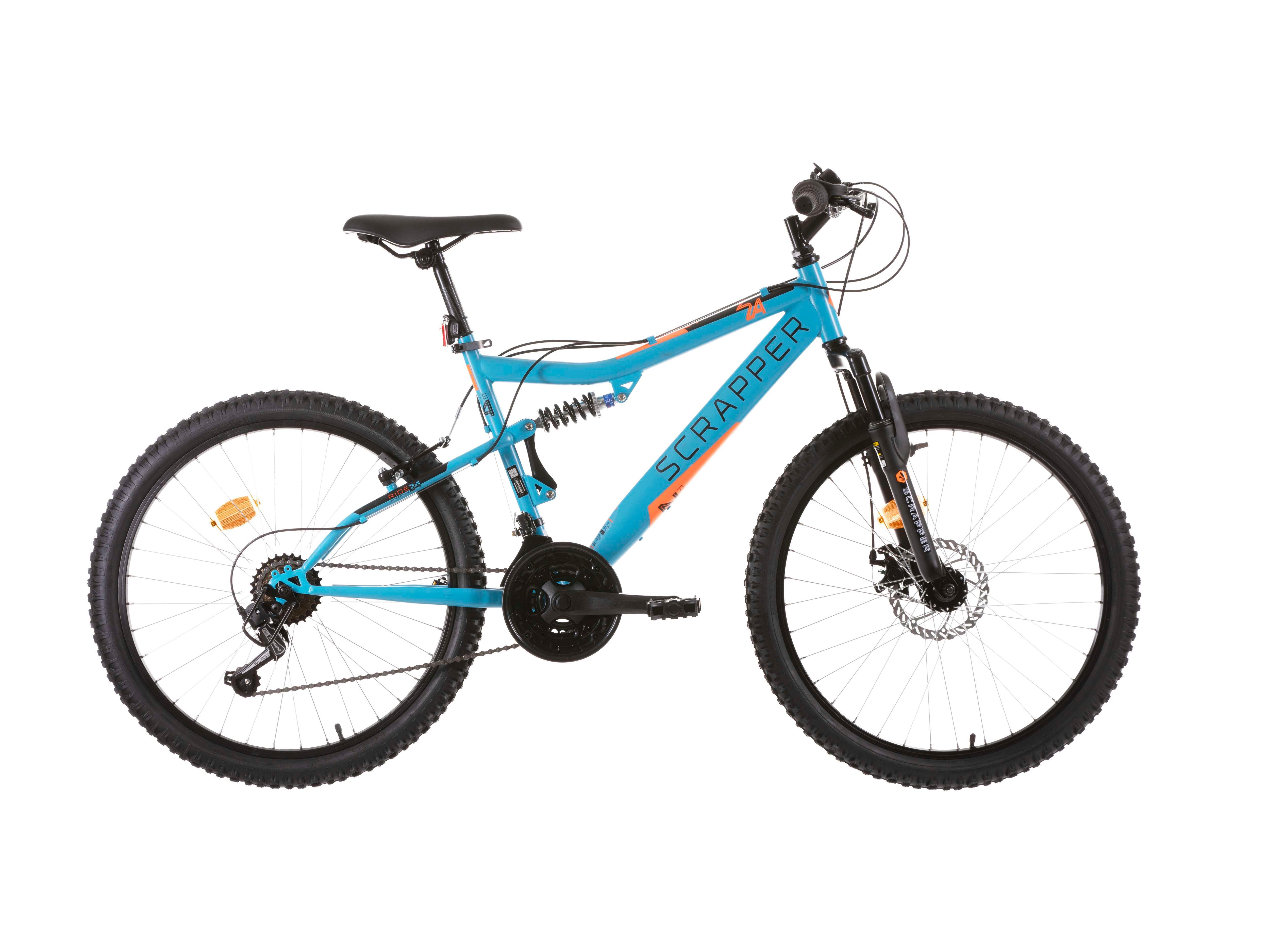 Vélo enfant (140-160 cm) - VTT 24'' Tout suspendu SCRAPPER - Fourche télescopique - 18 Vitesses - Dérailleur shimano - Frein à disque avant et V-Brake à l'arrière