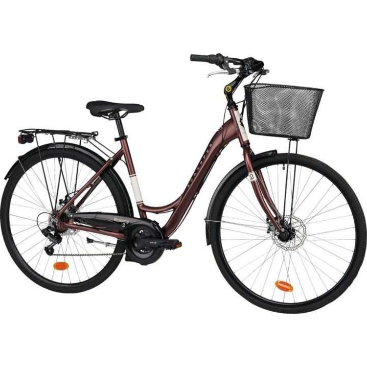 VTC 28'' Ville Rigide Femme Alu Scrapper Railway 2 - Cadre Alu rigide avec enjambement bas - Fourche rigide - 18 vitesses par poignées tournantes Microshift - Freins avant et arrière à disque mécaniques Promax DSK300 avec étriers & Leviers aluminium - Dérailleur arrière TY21 - Potence réglable Alu - Jantes aluminium & pneus noirs - Gardes boue - Porte bagages - Béquille - Carter - Selle confort - Sonnette - Eclairage à piles fournies - Taille L (1.70 m - 1.80 m)