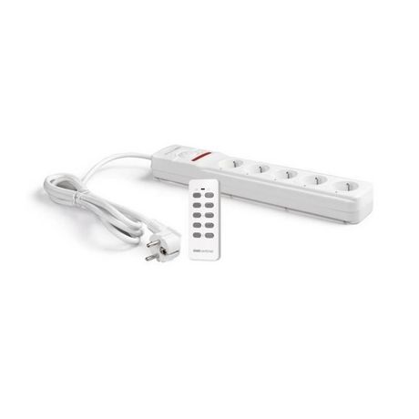 Rallonge multiprise télécommandée + télécommande - Portée 30 metres en champ libre - Economie d'énergie (coupe vos appareils en veille) - Commande individuellement jusqu'a 5 appareils branchés (5 prises / 5 canaux) - Fréquence 433,92 MHz - Charge maximale 2300 W - Alimentation (multiprise) : 230V AC