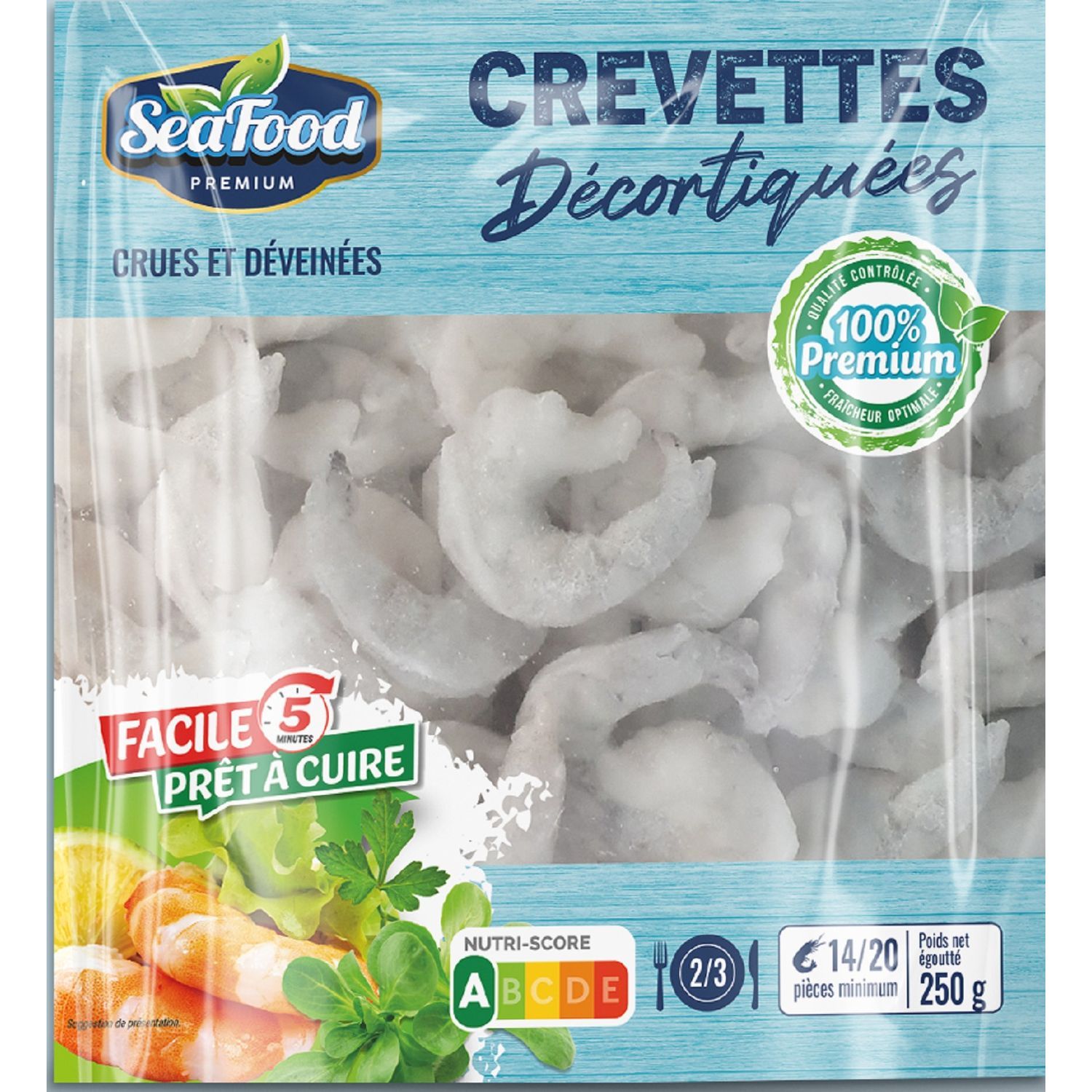 Crevettes décortiquées crues et déveinées 250G