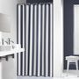 En raison de la combinaison de couleurs altique du bleu et du blanc, la salle de bain est impregnee d'une atmosphere calme avec le rideau de douche Linje de la marque Sealskin. Le rideau de douche peut etre lave en machine a 30 degres. Le repassage du rideau le rend plus hydrofuge.
