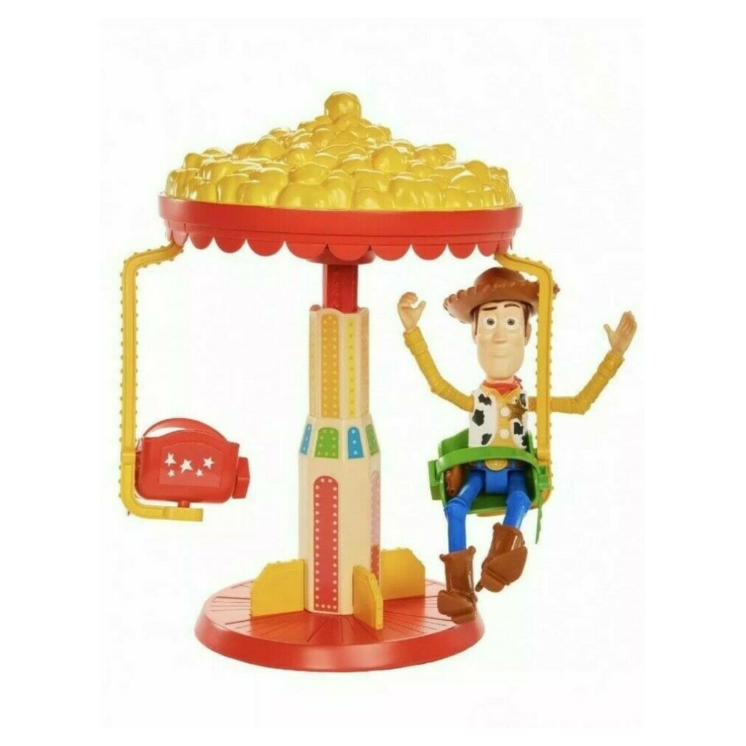 En savoir +Amuse-toi avec ce jouet 2 en 1 Pop-a-Whirl ! Inspiré de l'univers de Toy Story 4, cet ensemble de jeu se compose d'un seau à pop-corn qui s'ouvre pour révéler une fête foraine. La figurine de Woody incluse peut monter dans le manège qui tourne.