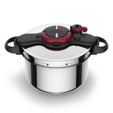 Autocuiseur SEB CLIPSO MINUTE en inox, 7,5 L, compatible tous feux, y compris induction. Ouverture facile par bouton-poussoir, poignées fixes. Fabriqué en France, diamètre 24 cm, passe au lave-vaisselle. Idéal pour une cuisson rapide et homogène.