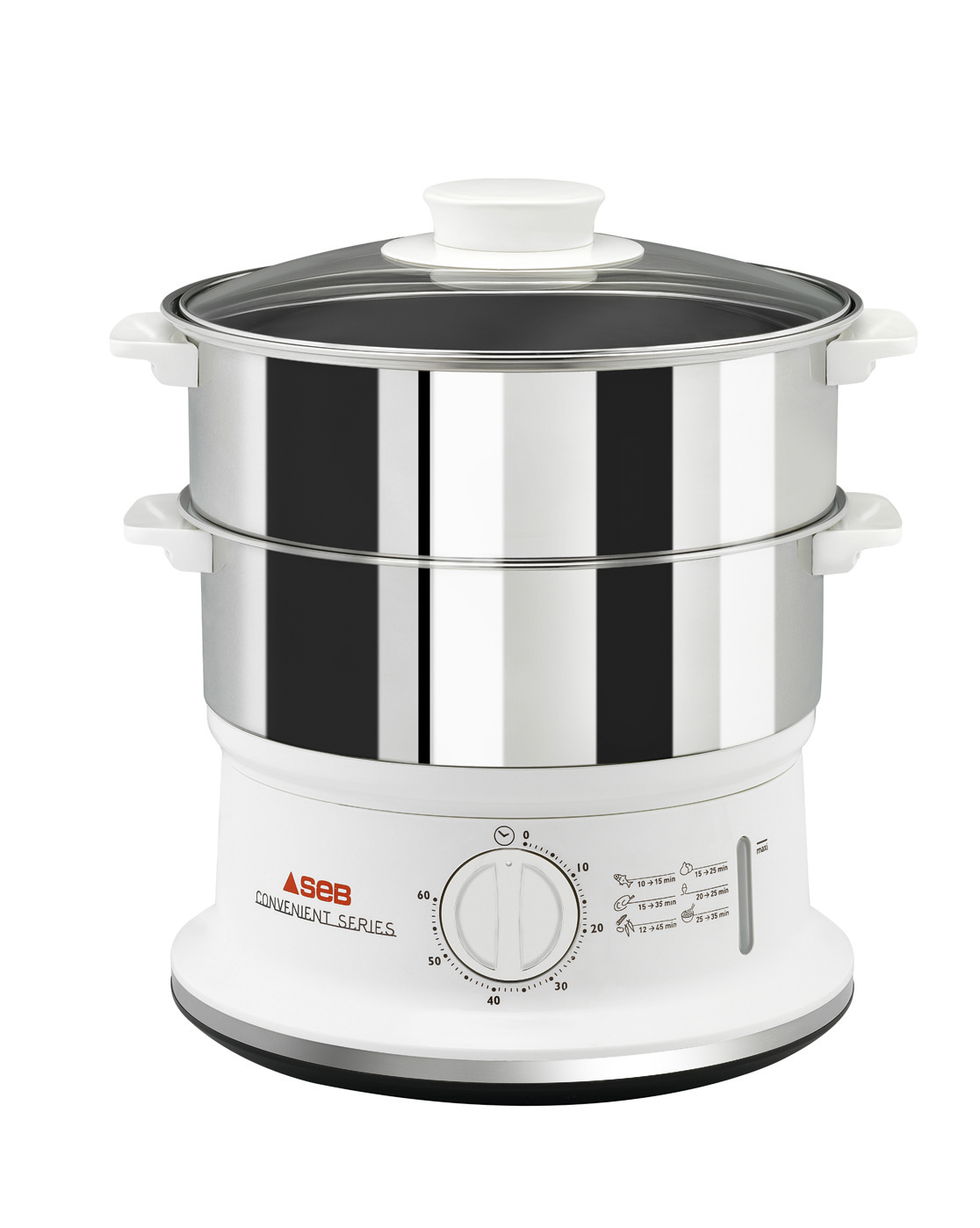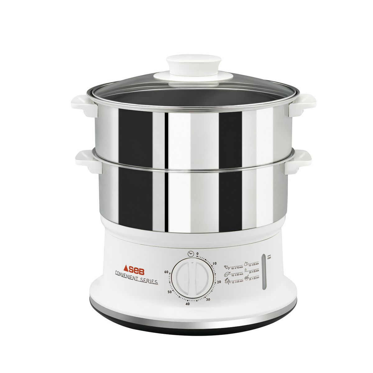 Ses deux bols sont empilables pour un encombrement minimal. Son minuteur 60 mn avec arrêt automatique rend son utilisation très simple. De plus, le niveau d’eau se surveille facilement et peut être complété durant la cuisson. Enfin, vous apprécierez la robustesse de l’inox.