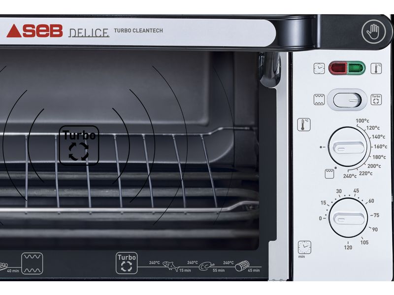 Le four posable OF246800 de SEB dispose d'une capacité de 19 Litres. Vous pouvez cuire, gratiner ou griller vos préparations culinaires en toute simplicité.