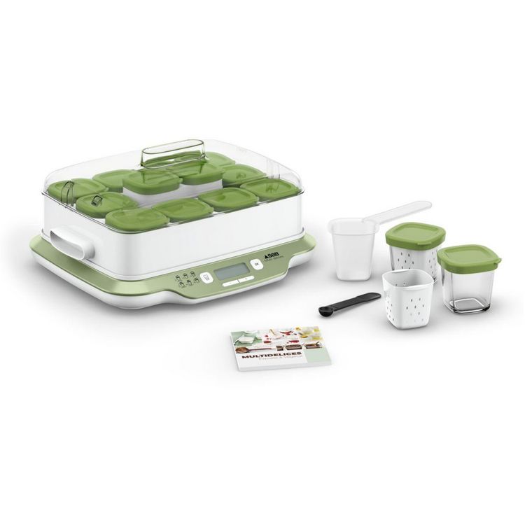 | Livré avec | Livre de recettes, 12 Pots, 12 Faisselles, louche de mesure incluse pour verser facilement vos préparations dans les pots. 1 livre de recettes inclus | |