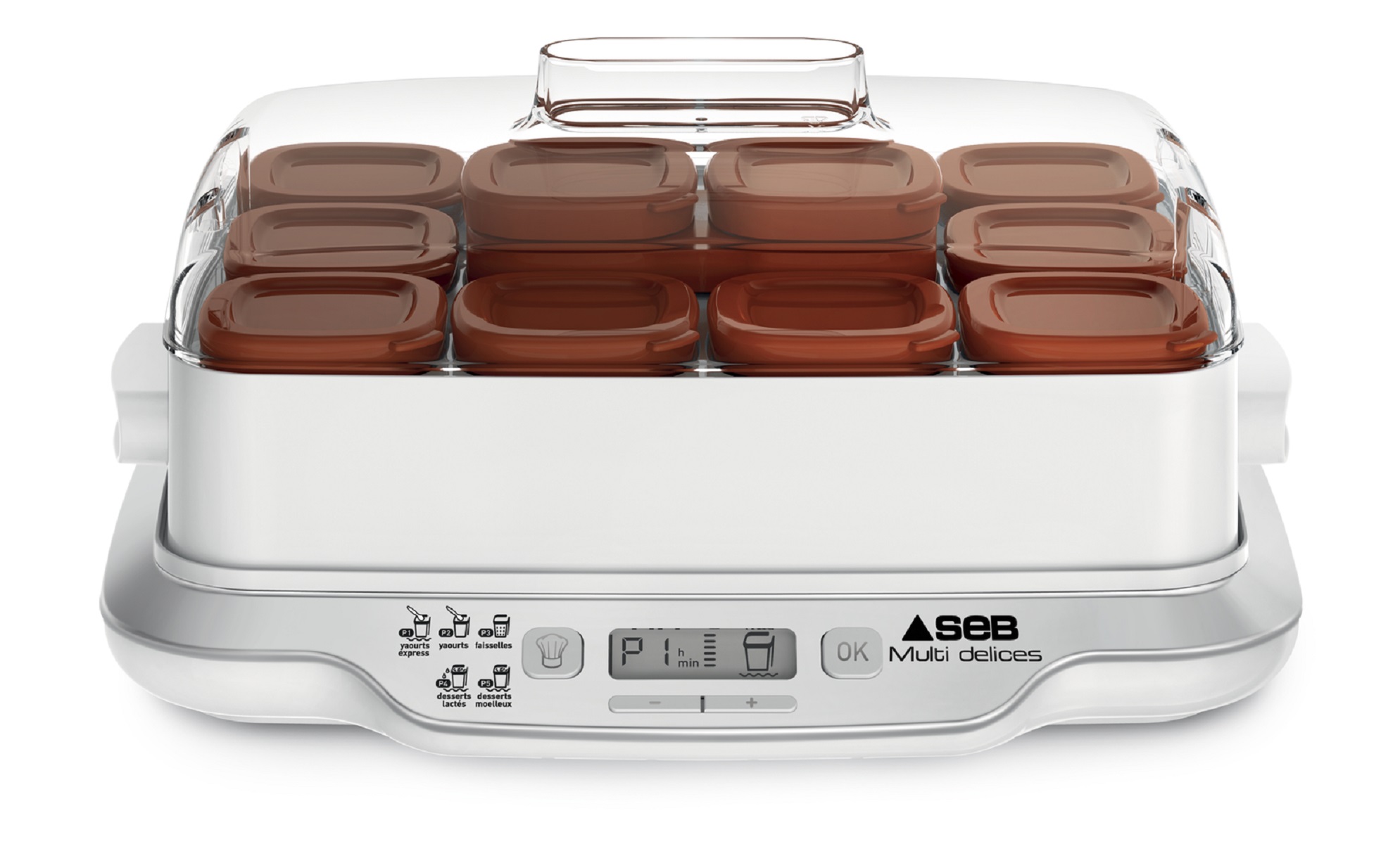 La yaourtière SEB Multi delices express vous offre des résultats exceptionnels en un rien de temps et met une variété infinie de desserts à votre portée. Ses cinq programmes vous permettront de réaliser des desserts maison savoureux et toujours réussis (yaourts, desserts lactés,fromages blancs et desserts moelleux.). Le mode yaourts express 4 heures peut même diviser par deux le temps nécessaire avant la dégustation