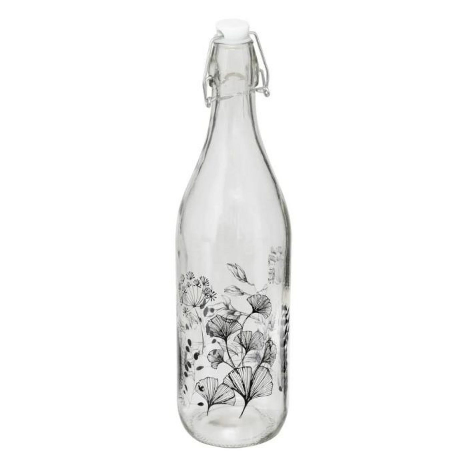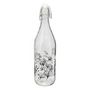 Informations Techniques : Dimensions : L. 8,7 x l. 8,7 x H. 31,7 cm Matière : Verre Spécificités : Pratique & Utile Bouteille limonade Avec bouchon à étrier Imprimé floral Capacité : 1 L Poids : 0,53 kg Couleur : Transparent