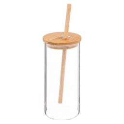 Informations Techniques : Dimensions : L. 7,1 x l. 6,5 x H. 20 cm Matières : Verre Borosilicate & Bambou Spécificités : Pratique & Tendance Chope & Paille Contact Alimentaire Contenance : 40 cl Poids : 0,175 kg Couleur : Transparent & Naturel