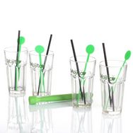 Informations Techniques : Dimensions : Verre : D. 8 x H. 14,8 cm Paille : D. 0,5 x H. 20,8 cm Mélangeur : L. 2,8 x l. 0,2 x H. 20,8 cm Pilon : D. 2,4 x H. 20,8 cm Matière : Verre & Polypropylène Ce coffret contient : 4 grands verres de 36 cl 1 pillon 4 pailles noires 4 mélangeurs verts Entretien fac