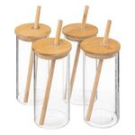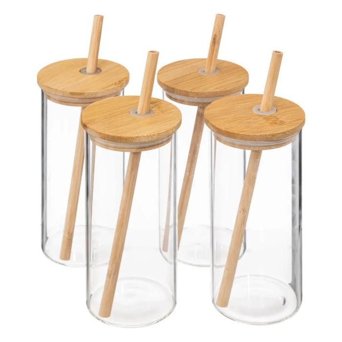 Coffret Carafe, 4 Verres & Pailles Bambou 28cm Transparent