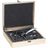 Caractéristiques générales Type de produit Coffret vin Composition Tire bouchon: L. 18,2 x l. 14,5 x h.13,5 cm Coupe capsule : L. 6,5cm, l. 4,8cm Spirale : L. 9,5cm, l. 1,2 Bouchon : d. 2,2cm , h. 8.9cm / 57.1g Bec verseur : L. 2.4cm, l.2cm , h. 8cm / 11.7g Thermomètre : :12,6 x2.7x1,16c