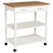 Idéal pour servir et désservir ou comme meuble d'appoint sur roulettes.FICHE TECHNIQUE- Desserte en MDF et plateau en mélamine imitation bambou.- Poignées en métal.- 4 Roulettes pour un déplacement en toute simplicité.- 2 Tiroirs de rangement intégrés.- A monter soi-même, instruction de montage four