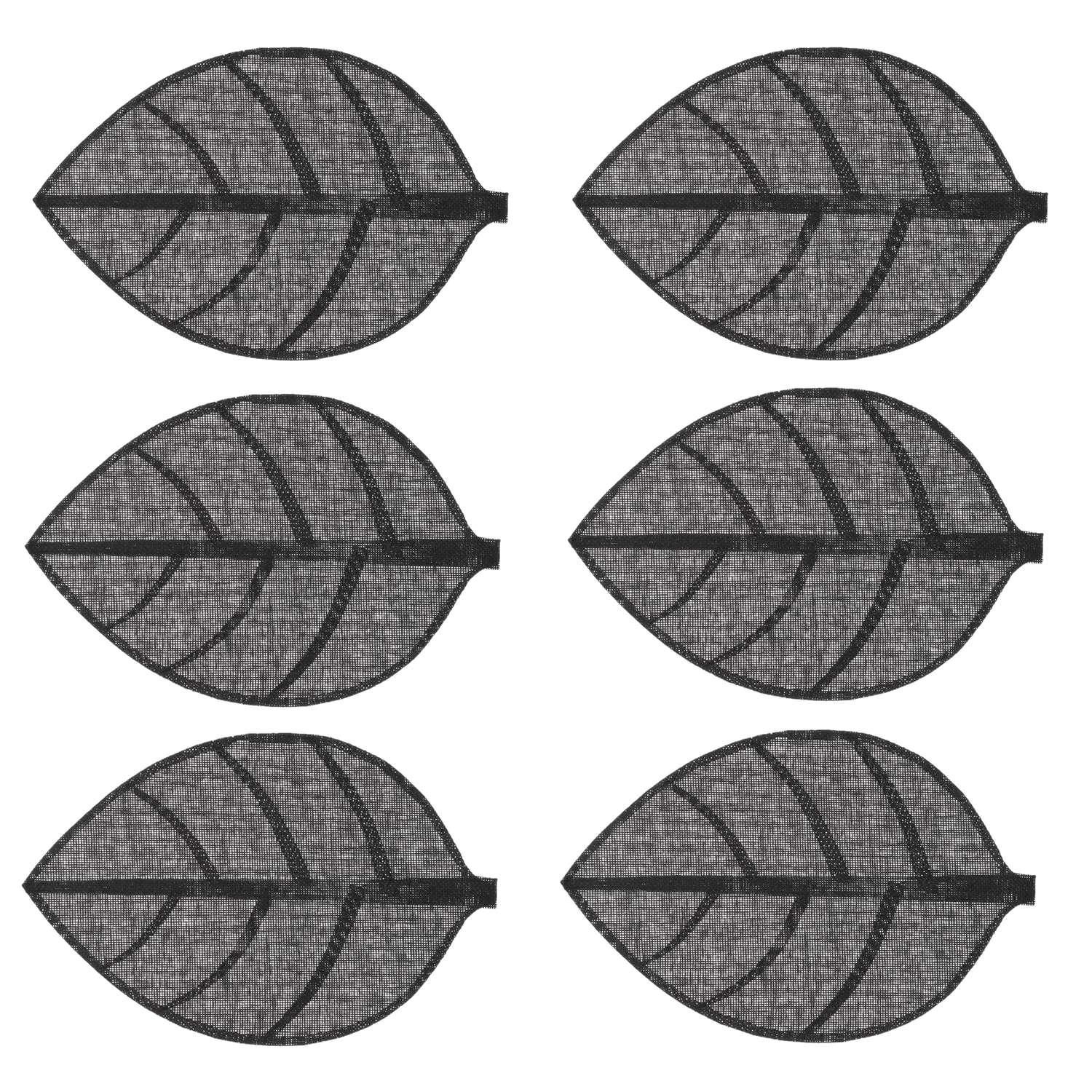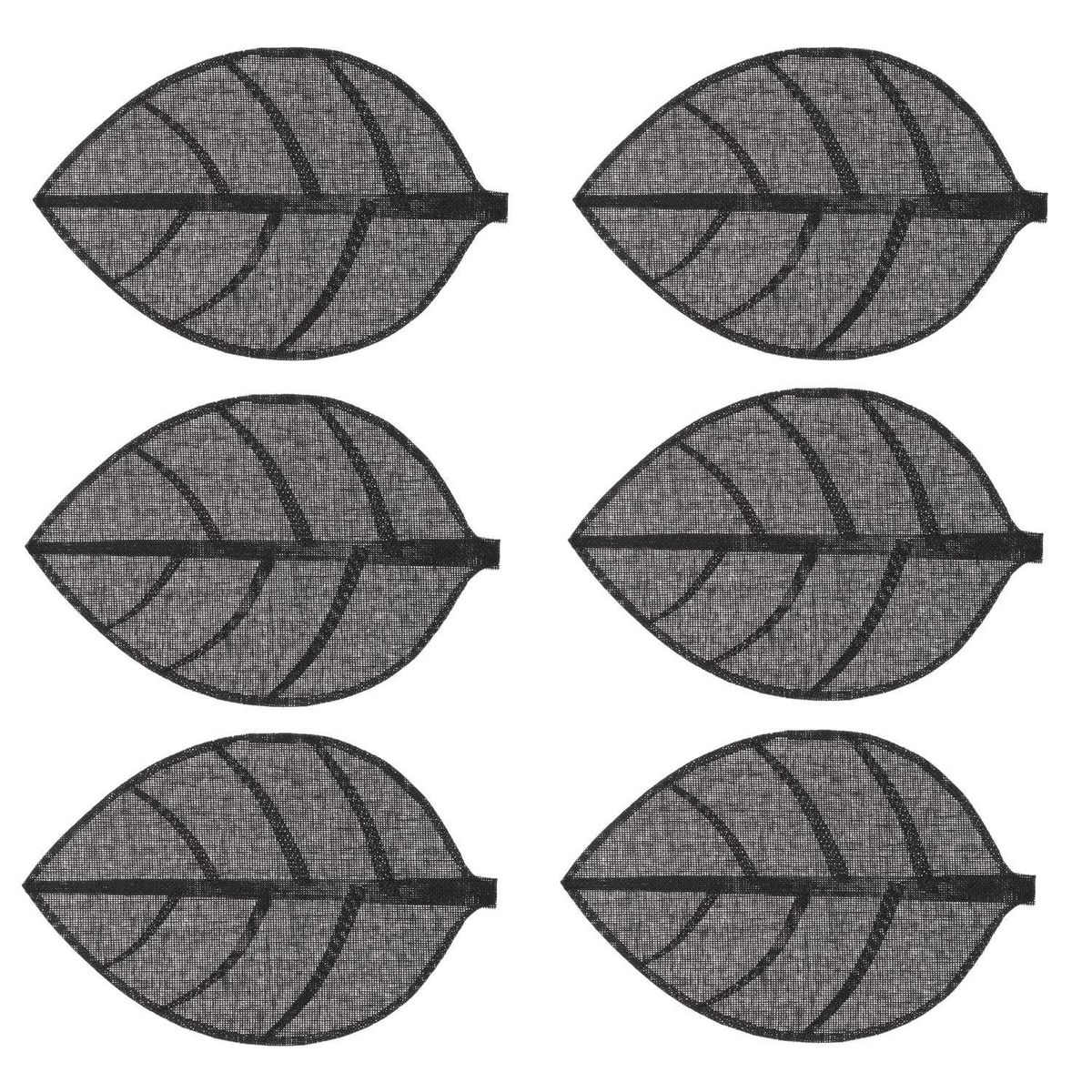 Lot 6x Set de table Feuille - 50 x 33 cm - Noir
