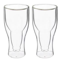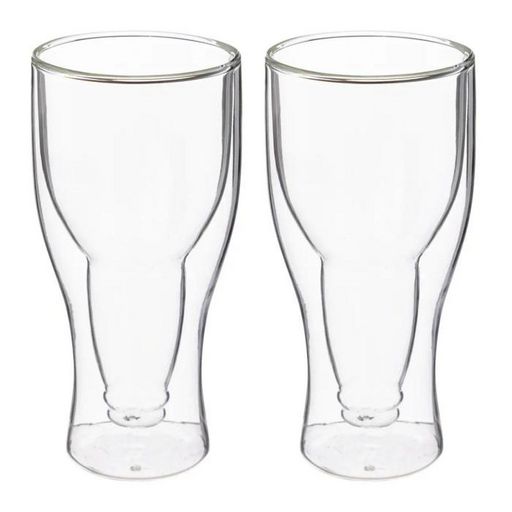 Informations Techniques : Dimensions : D. 8,7 x H. 17,8 cm Matière : Verre Spécificités : Pratique & Utile Lot de 2 verres à bière Double paroi Contenance : 35 cl Poids : 0,21 kg Couleur : Transparent
