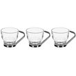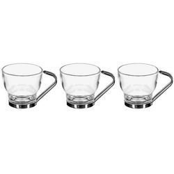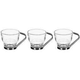 Informations Techniques : Dimensions : D. 6,7 x H. 6,2 cm Matières : Verre & Métal Spécificités : Pratique & Utile Lot de 3 mugs Anse en métal Contenance : 11 cl Compatible : Lave-vaisselle Poids : 0,31 kg Couleur : Transparent