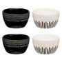 Lot de 4 Coupelles en Céramique Ethnique 10cm Noir & Blanc