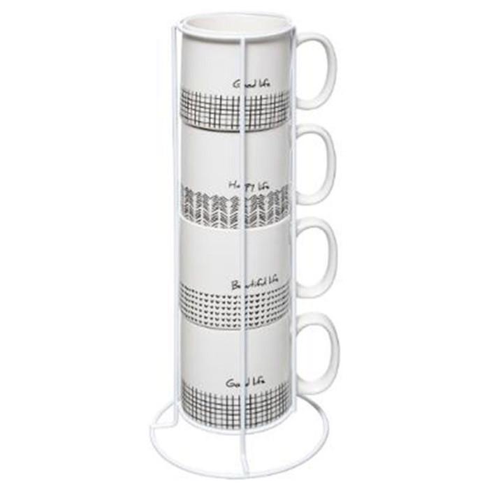 Lot de 4 Mugs & Rack Design Life 24cl Blanc