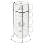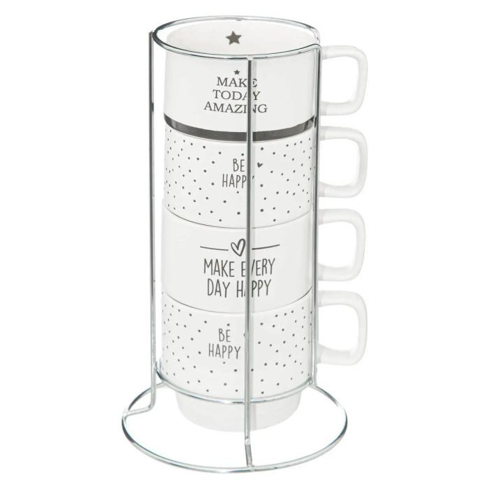 Lot de 4 Mugs sur Rack Happy 22cl Blanc