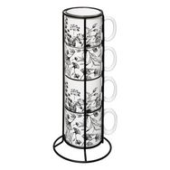 Lot de 4 Mugs sur Rack White Floral 24cl Blanc