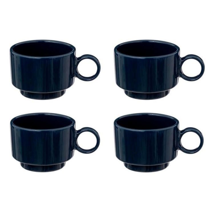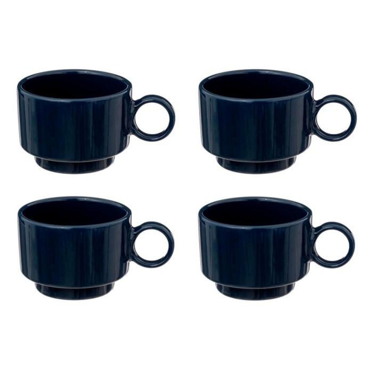 Informations Techniques : Dimensions : L. 7,1 x l. 5,1 x H. 9,9 cm Matière : Grès (Céramique) Spécificités : Rétro & Pratique Lot de 4 tasses à café Contenance : 10 cl Poids : 0,12 kg Couleur : Bleu Encre