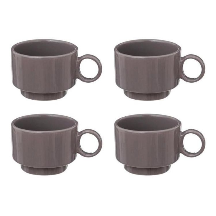 Informations Techniques : Dimensions : L. 7,1 x l. 5,1 x H. 9,9 cm Matière : Grès Spécificités : Rétro & Pratique Lot de 4 tasses à café Contenance : 10 cl Poids : 0,12 kg Couleur : Gris