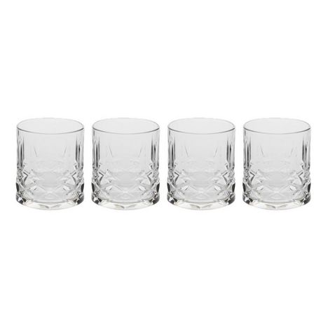 Informations Techniques : Dimensions : D. 8,1 x H. 9,7 cm Matière : Verre Spécificités : Pratique & Utile Lot de 4 verres bas Compatible lave-vaisselle Contenance : 35cl Poids : 0,32 kg Couleur : Transparent