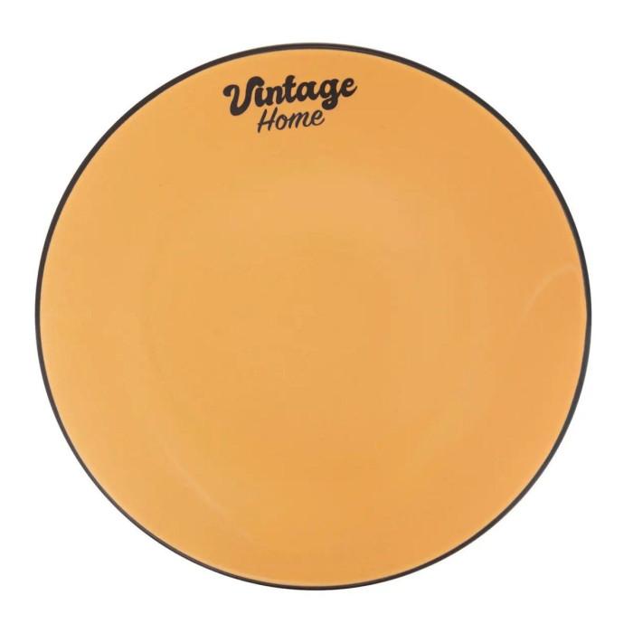Informations Techniques : Dimensions : D. 20 cm Matière : Grès Spécificités : Pratique & Tendance Lot de 6 assiettes à dessert Inscription Vintage home Liseret noir en bordure Forme ronde Poids : 0,37 kg (à l'unité) Couleur : Jaune