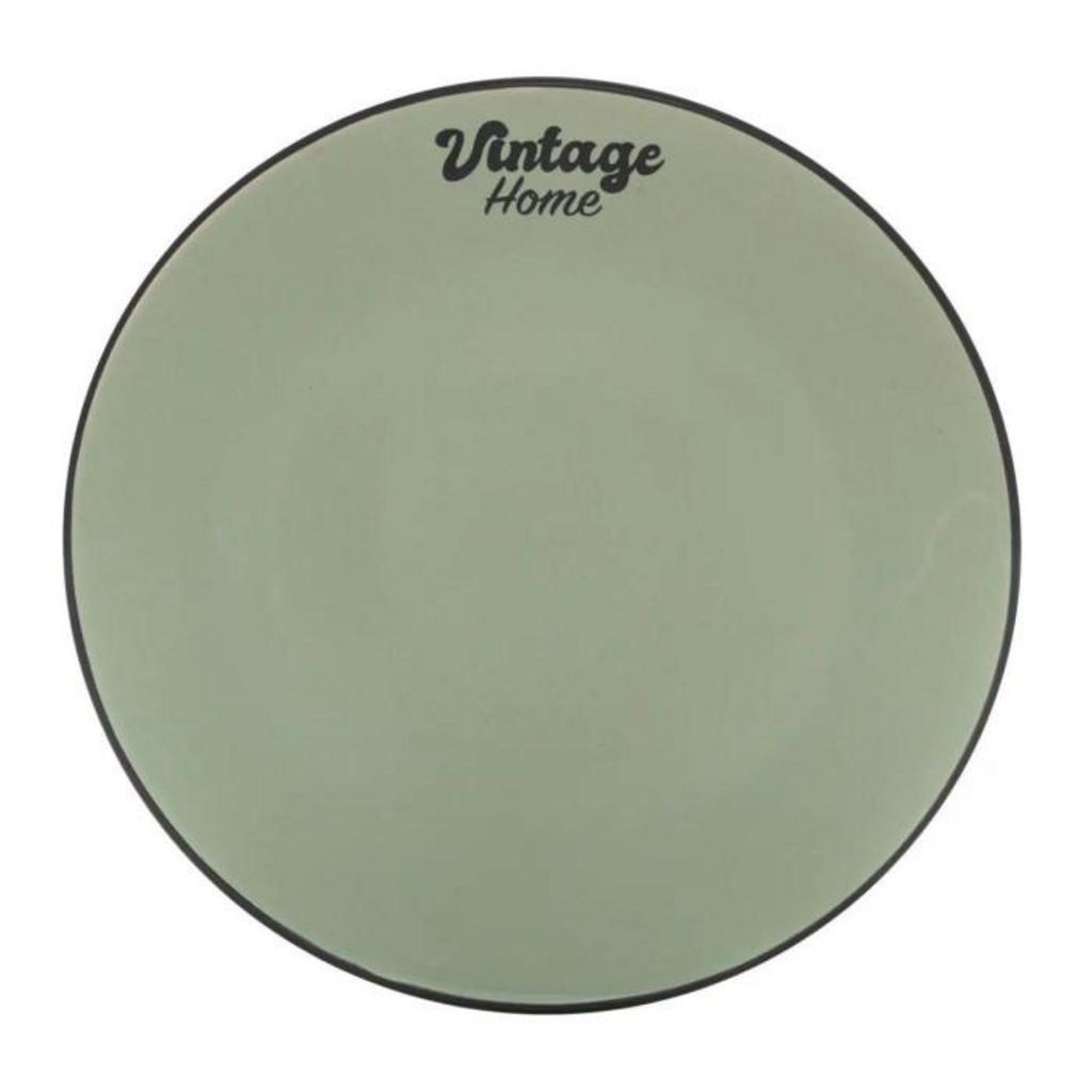 Informations Techniques : Dimensions : D. 20 cm Matière : Grès Spécificités : Pratique & Tendance Lot de 6 assiettes à dessert Inscription Vintage home Liseret noir en bordure Forme ronde Poids : 0,37 kg (à l'unité) Couleur : Vert