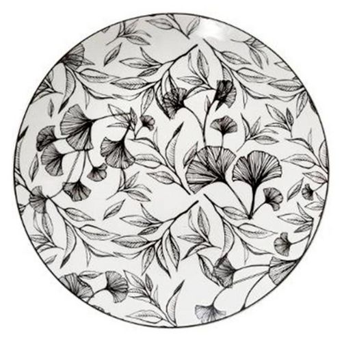 Informations Techniques : Dimensions : D. 19 x H. 2 cm Matière : Porcelaine Spécificités : Pratique & Utile Lot de 6 Assiettes à Dessert Forme Ronde Passage au Lave-Vaisselle & au Micro-Ondes A Motifs Poids : 0,34 kg Couleur : Noir & Blanc