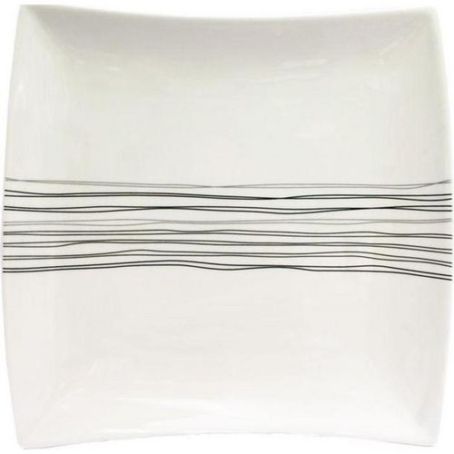 Lot de 6 Assiettes à Dessert Carrées Lignes 20cm Blanc