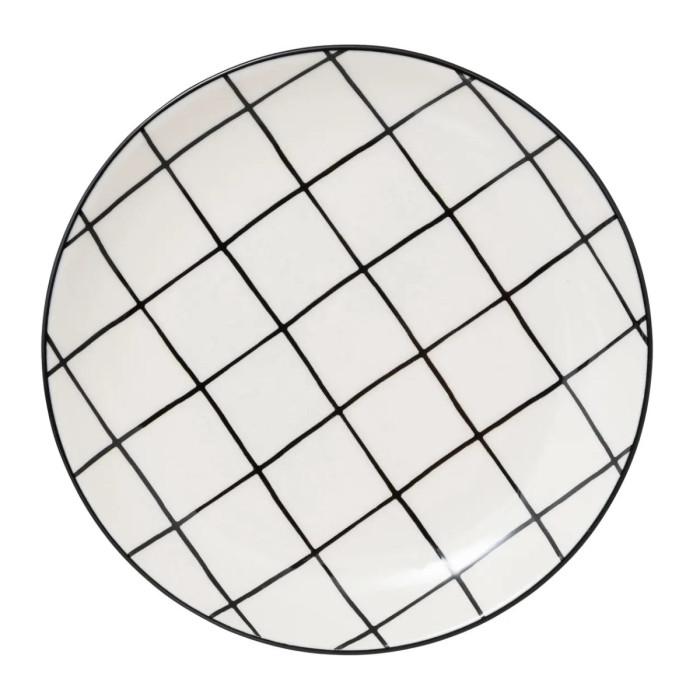 Informations Techniques : Dimensions : D. 20 x H. 2,3 cm Matière : Grès Spécificités : Pratique & Tendance Lot de 6 assiettes à dessert Motif quadrillage Forme ronde Poids : 0,35 kg (à l'unité) Couleur : Blanc