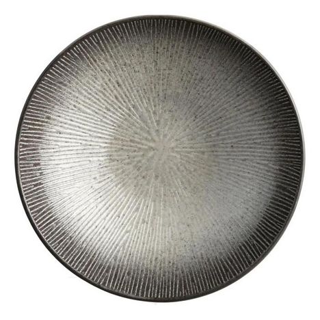 Informations Techniques : Dimensions : D. 19 cm Matière : Gres Vendu par lot de 6 uniquement Passable au lave-vaisselle Couleur : Blanc & Gris