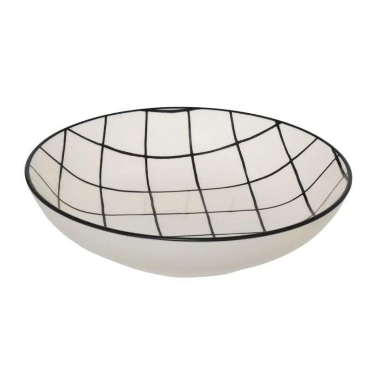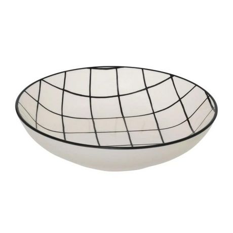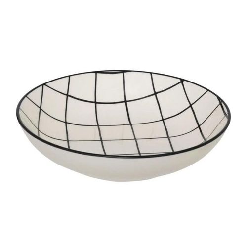 Informations Techniques : Dimensions : D. 20,3 x H. 5 cm Matière : Grès Spécificités : Pratique & Tendance Lot de 6 assiettes creuses Motif quadrillage Forme ronde Poids : 0,56 kg (à l'unité) Couleur : Blanc