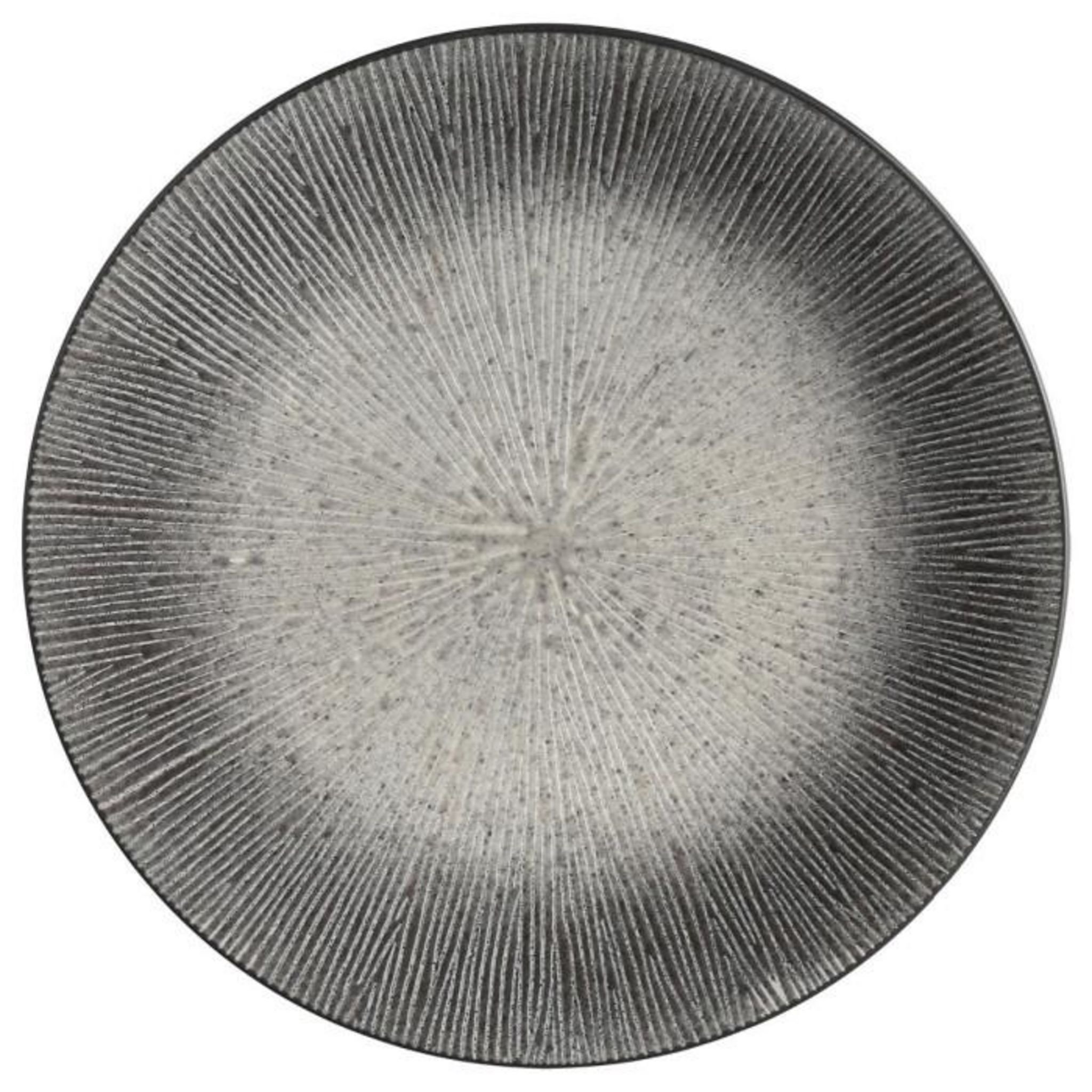 Informations Techniques : Dimensions : D. 27 cm Matière : Grès Vendu uniquement par lot de 6 Passable au lave-vaisselle Couleur : Gris & Blanc