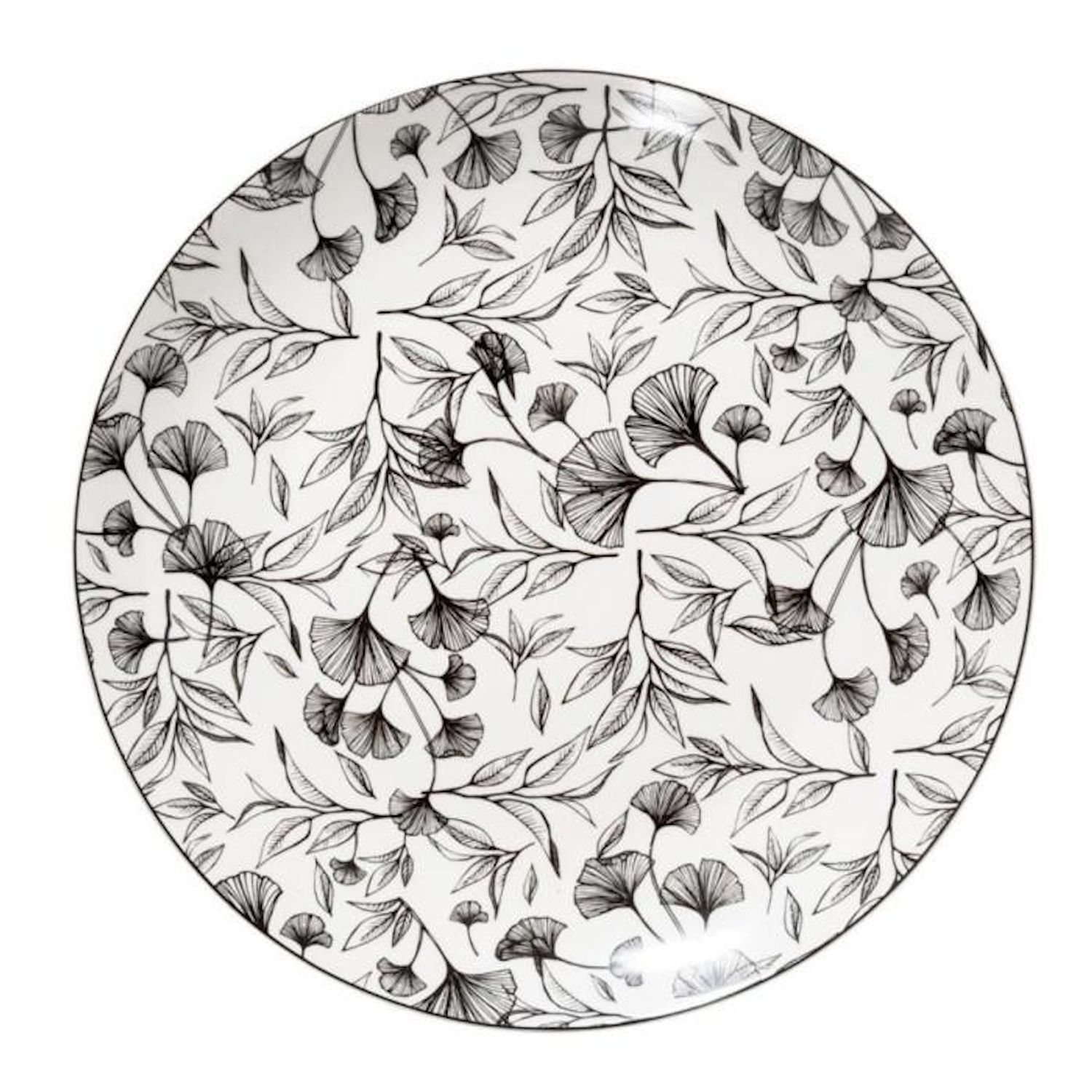 Lot de 6 Assiettes Plates Black Floral 27cm Noir