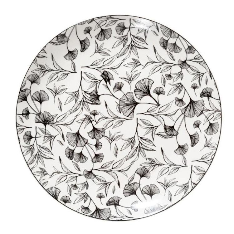 Informations Techniques : Dimensions : D. 27 x H. 3 cm Matière : Porcelaine Spécificités : Pratique & Utile Lot de 6 Assiettes Plates Forme Ronde Passage au Lave-Vaisselle & au Micro-Ondes A Motifs Poids : 0,73 kg Couleur : Noir & Blanc