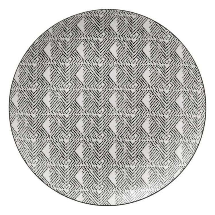 Informations Techniques : Dimensions : D. 26 x H. 2,9 cm Matière : Porcelaine Spécificités : Déco & Utile Lot de 6 assiettes plates Imprimé ethnique Poids : 0,75 kg (à l'unité) Couleur : Noir & Blanc