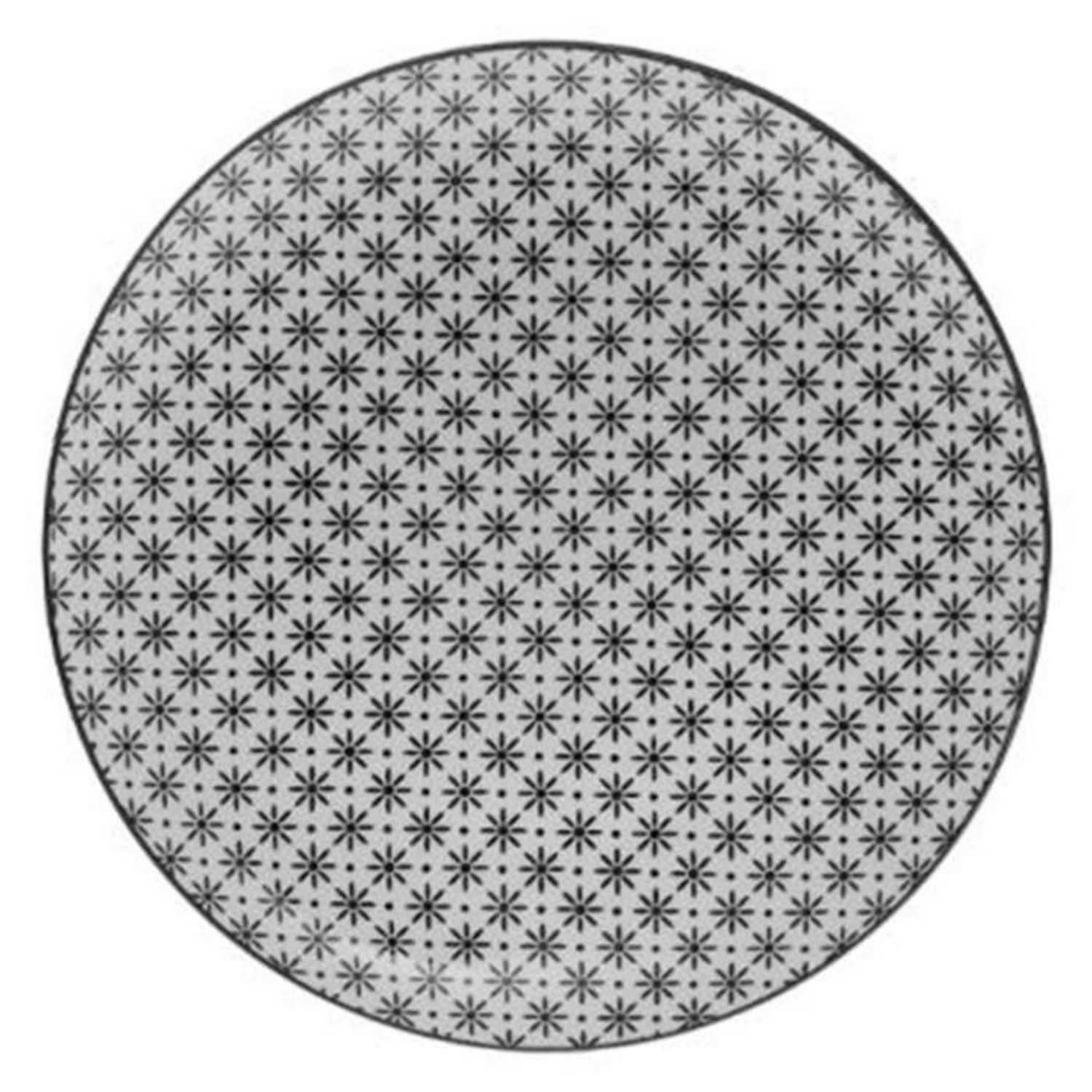 Informations Techniques : Dimensions : D. 26,8 x H. 2,7 cm Matière : Porcelaine Spécificités : Design & Moderne Lot de 6 assiettes plates Forme ronde Motif fleuri Facile d'entretien & d'utilisation Poids : 0,719 kg Couleur : Noir & Blanc