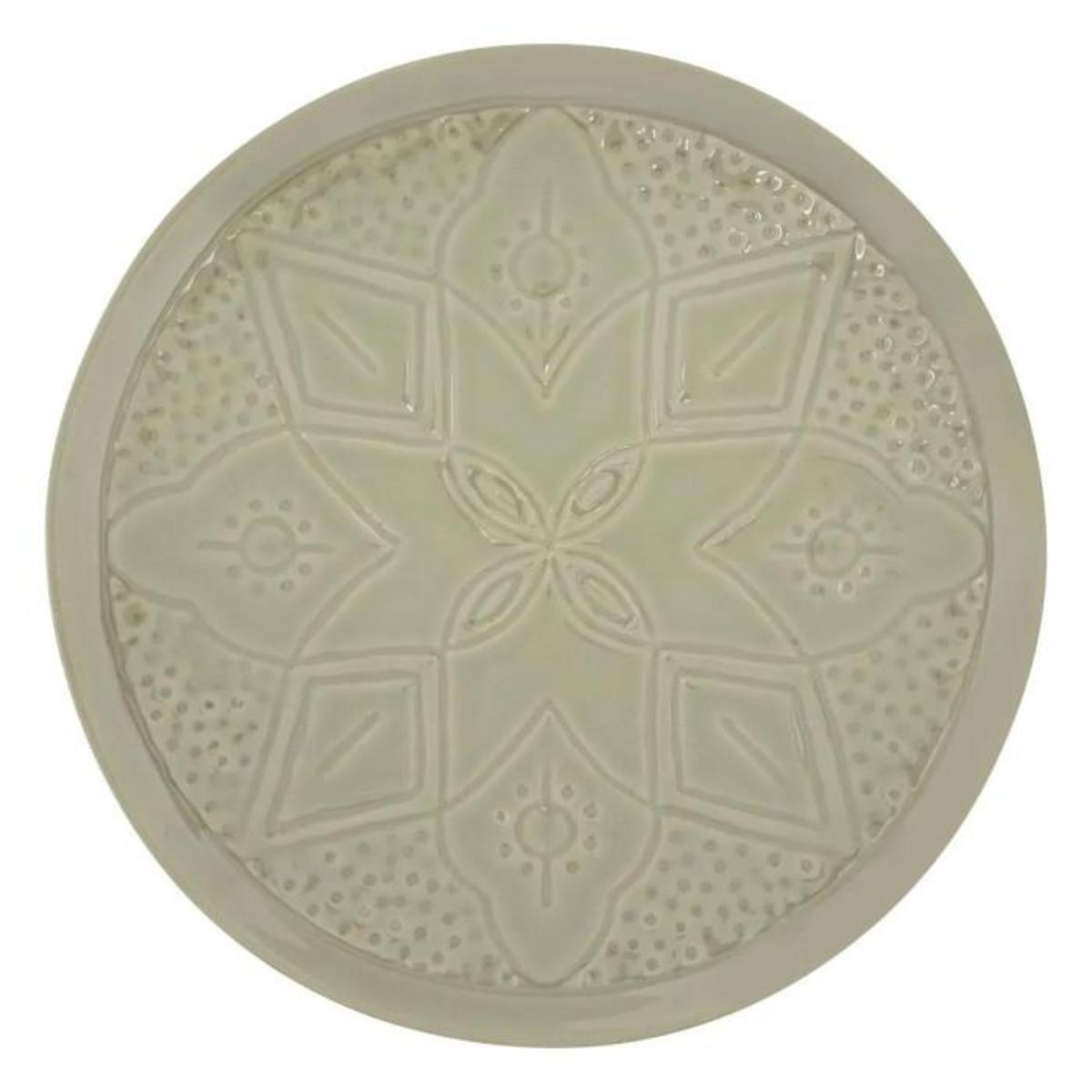 Informations Techniques : Dimensions : D. 27,5 x H. 2,5 cm Matière : Faïence Spécificités : Coloré & Utile Lot de 6 assiettes plates Motif mandala Forme ronde Poids : 0,79 kg (à l'unité) Couleur : Vert Olive