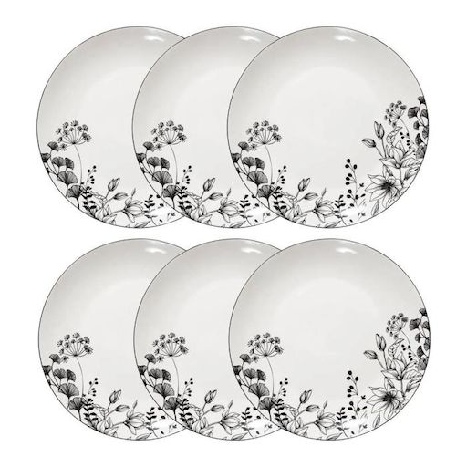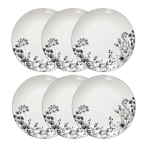 Lot de 6 Assiettes Plates White Floral 27cm Blanc