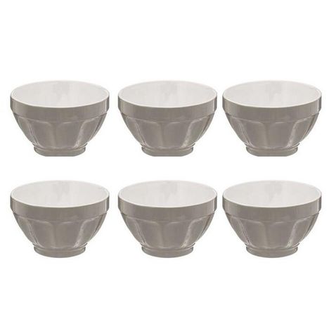 Informations Techniques : Dimensions : D. 14,5 x H. 8,8 cm Matière : Faïence Spécificités : Pratique & Utile Lot de 6 Bols Forme Ronde Passage au Lave-Vaisselle & au Micro-Ondes Contact Alimentaire Contenance : 60 cl Poids : 0,51 kg Couleur : Gris
