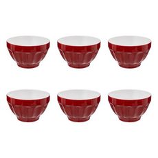 Informations Techniques : Dimensions : D. 14,5 x H. 8,8 cm Matière : Faïence Spécificités : Pratique & Utile Lot de 6 Bols Forme Ronde Passage au Lave-Vaisselle & au Micro-Ondes Contact Alimentaire Contenance : 60 cl Poids : 0,51 kg Couleur : Rouge