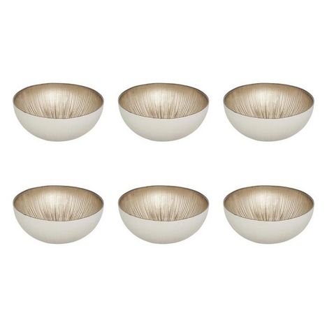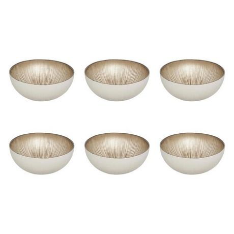 Informations Techniques : Dimensions : D. 15 x H. 6,5 cm Matière : Verre Spécificités : Élégant & Original Lot de 6 bols ronds Imprimé effet plissé Poids : 0,3 kg (à l'unité) Couleur : Champagne